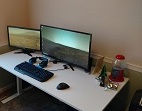 I bought a sit stand desk from Ikea a while back, and have liked it a lot actually. It comes with a hand crank that you use to raise and lower the desk. However, in order to make the crank easy to turn, they've geared it so you have to crank it like a million times in order to get the thing to go all the way up and down. That kind of got me thinking that I could add a motor to it to make it go up faster. Plus I could be lazy and not have to do any physical work to raise/lower it. I was able to get it working (with some difficulty), but it still moves super slowly unfortunately.