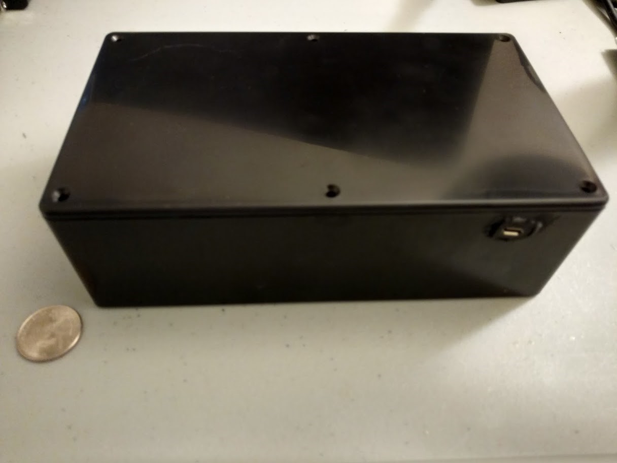 a temperature sensor. All of this sits inside of a basic black project box.