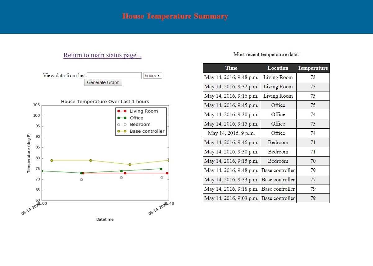 receive data from the remote modules (like temperature/humidity). The actual django website has 3 main pages right now. One main page that has a summary of all the stuff going on in the house,