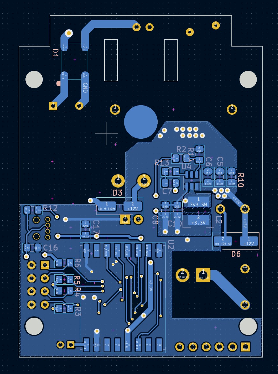amount of time when mains voltage is lost. This 12V rail feeds into a second DC-DC switching regulator that powers the digital electronics. If the 12V rail